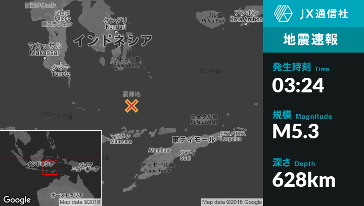 | 震源地 | インドネシアのPalueから北北東163kmの地点 |