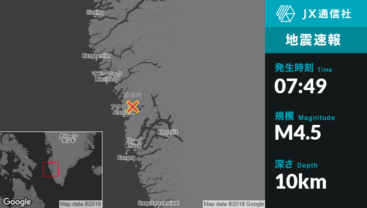 | 震源地 | グリーンランドのManiitsoqから南東68kmの地点 |