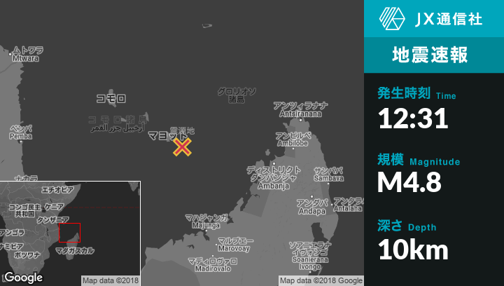| 震源地 | マヨットのPamandziから南東40kmの地点 |