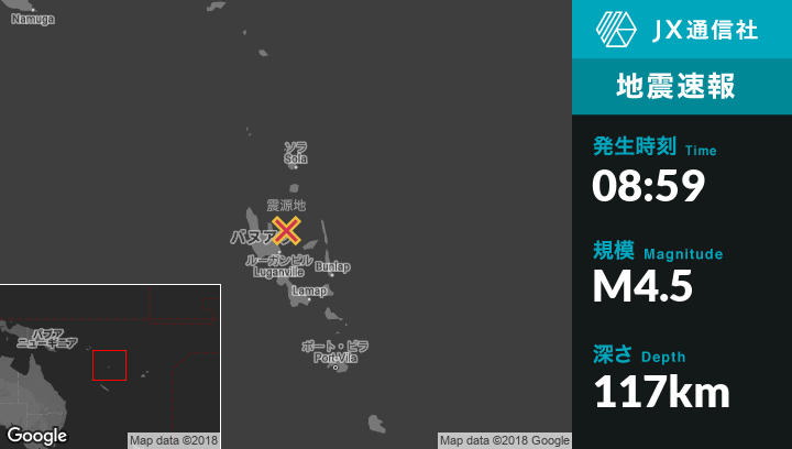 | 震源地 | バヌアツのPort-Olryから東北東32kmの地点 |