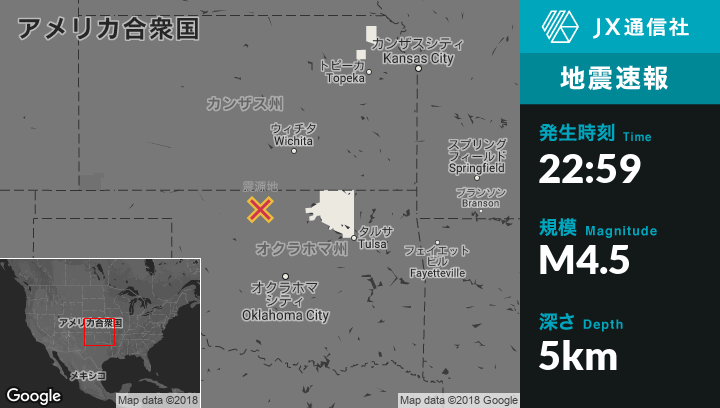 | 震源地 | オクラホマ州のCherokeeから東26kmの地点 |