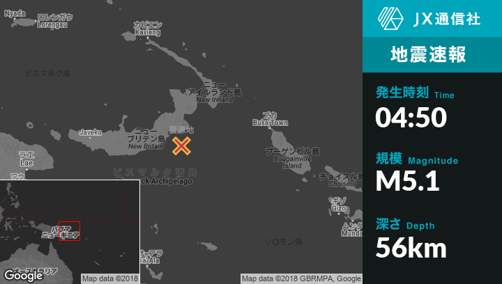 | 震源地 | パプアニューギニアのKokopoから南南西170kmの地点 |