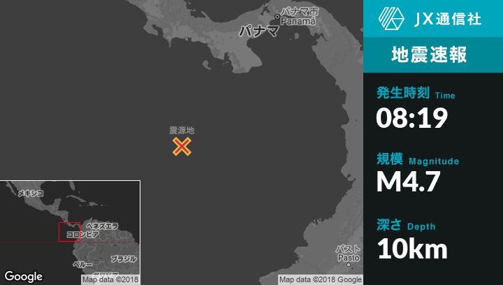 | 震源地 | パナマのPunta de Buricaから南332kmの地点 |
