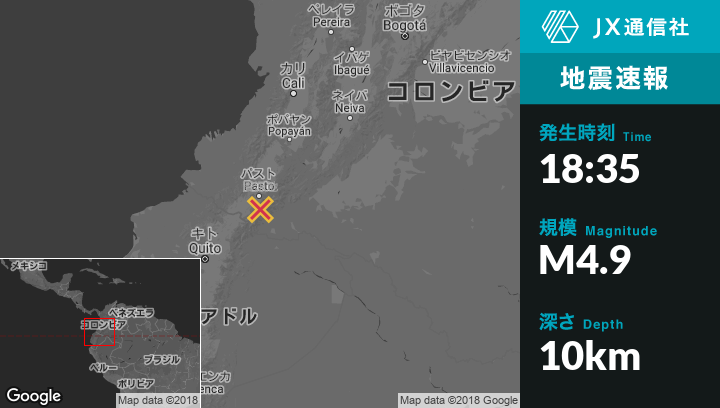 | 震源地 | コロンビアのTanguaから東南東16kmの地点 |