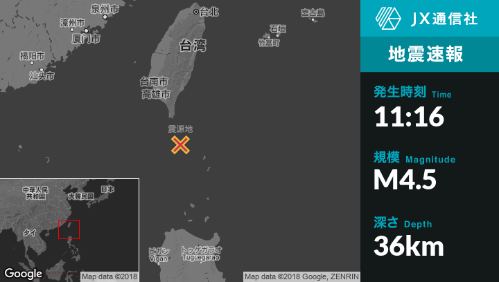 | 震源地 | 台湾のHengchunから南南東90kmの地点 |