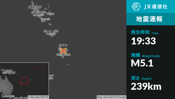 | 震源地 | バヌアツのIsangelから北北東73kmの地点 |