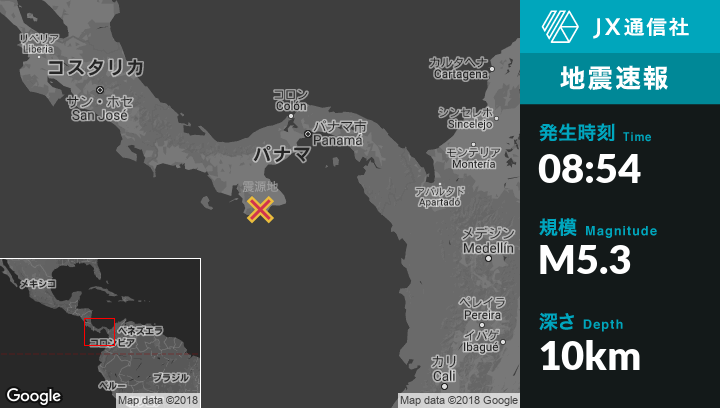 | 震源地 | パナマのTonosiから西北西13kmの地点 |