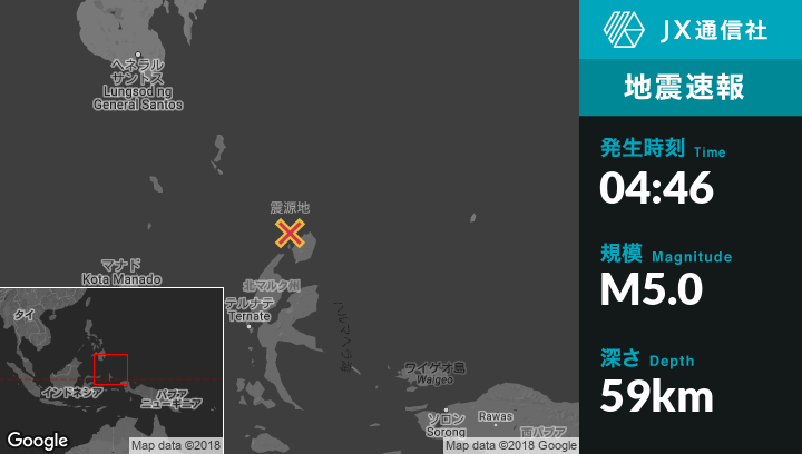 | 震源地 | インドネシアのTobeloから北110kmの地点 |