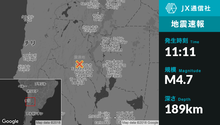 | 震源地 | アルゼンチンのBelenから南東44kmの地点 |