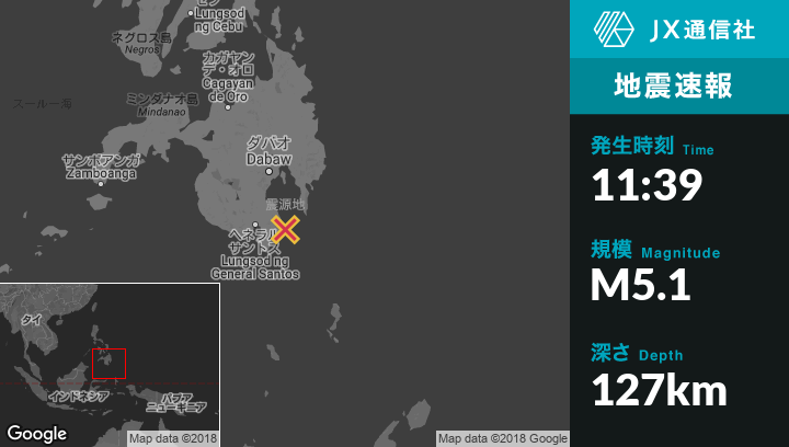 | 震源地 | フィリピンのLapuanから東8kmの地点 |