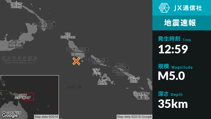 | 震源地 | パプアニューギニアのPangunaから南南西69kmの地点 |