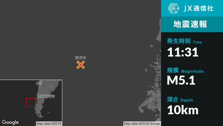 | 震源地 | チリのPuerto Quellonから西南西517kmの地点 |