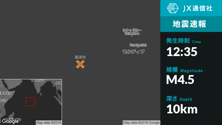 | 震源地 | モルディブのHithadhooから西南西430kmの地点 |