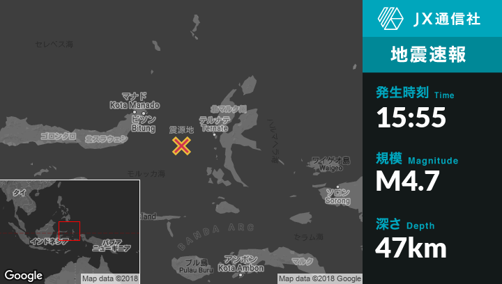 | 震源地 | インドネシアのKota Ternateから西南西119kmの地点 |