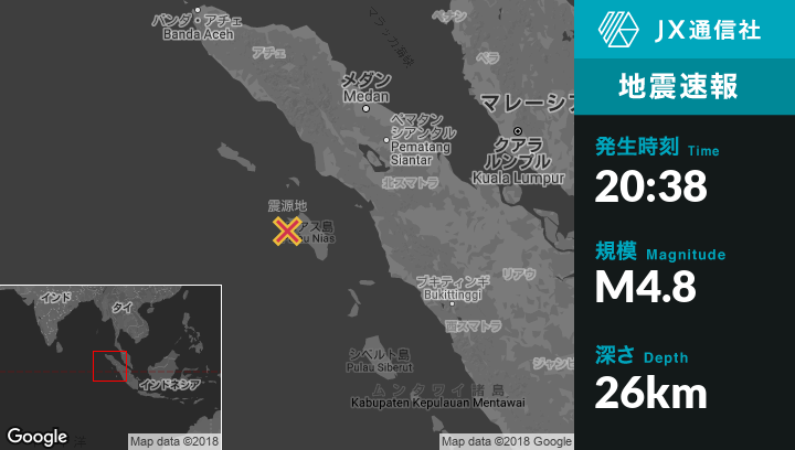 | 震源地 | インドネシアのSinabangから南南東155kmの地点 |