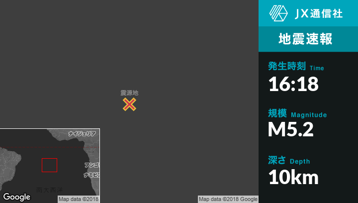 8月10日 16:18頃、セントヘレナのGeorgetownから南546kmの地点でM5.2の地震がありました。