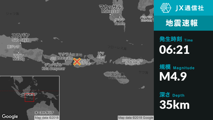 8月20日 06:21頃、インドネシアのLekongから北北東1kmの地点でM4.9の地震がありました。