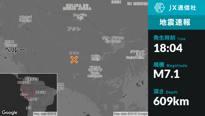 | 震源地 | ペルーのIberiaから西北西138kmの地点 |