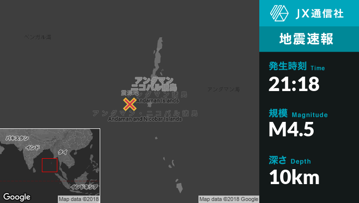 | 震源地 | インドのPort Blairから南西159kmの地点 |