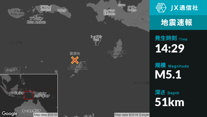 | 震源地 | インドネシアのSaumlakiから北117kmの地点 |