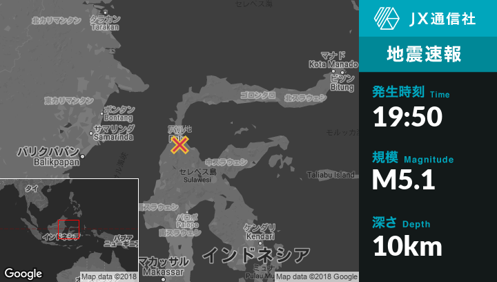 | 震源地 | インドネシアのPaluから北北東17kmの地点 |
