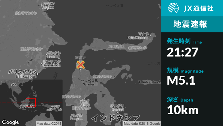 | 震源地 | インドネシアのPaluから北47kmの地点 |