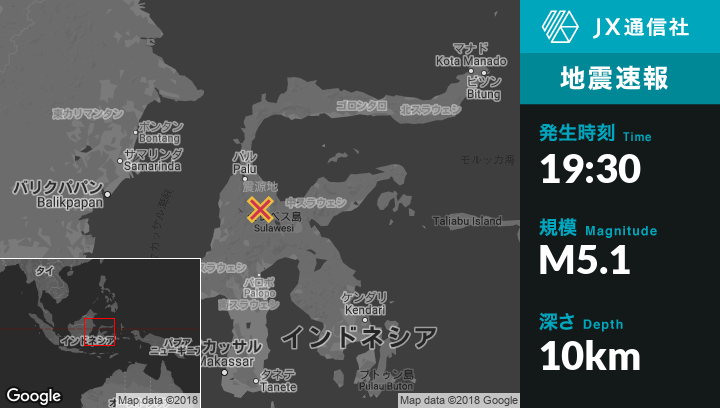 9月29日 19:30頃、インドネシアのKasiguncuから西49kmの地点でM5.1の地震がありました。