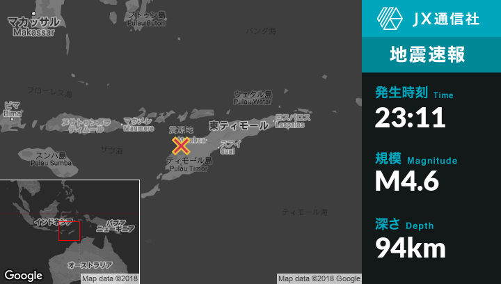 | 震源地 | インドネシアのKefamenanuから北西53kmの地点 |
