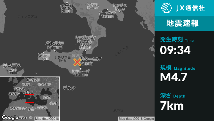 | 震源地 | イタリアのMisterbiancoから北北西2kmの地点 |