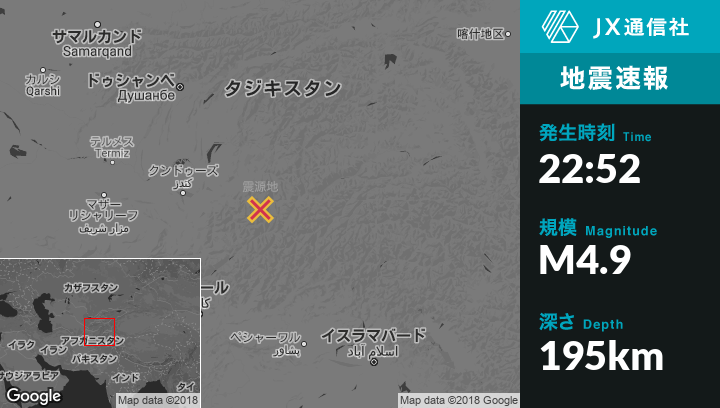 | 震源地 | アフガニスタンのJarmから南南西45kmの地点 |