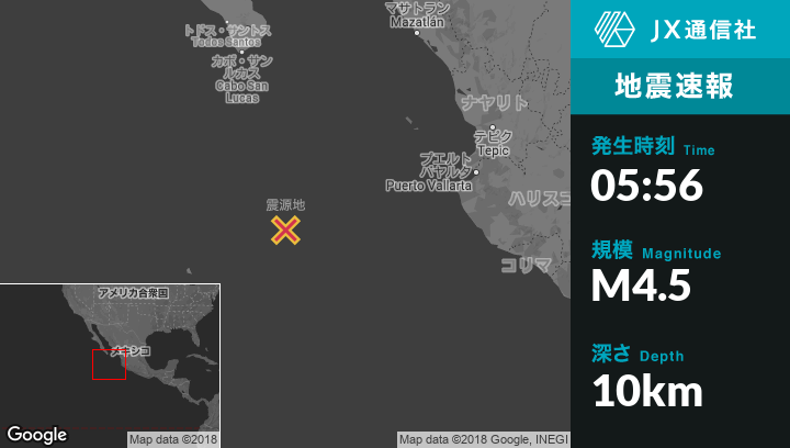 | 震源地 | メキシコのSocorro Islandから東北東226kmの地点 |