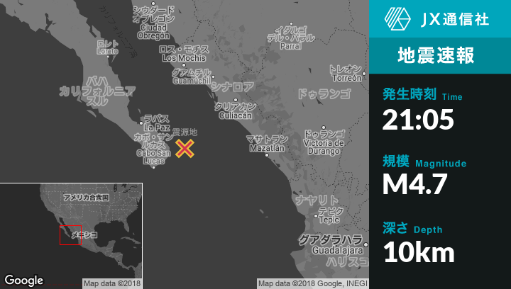 | 震源地 | メキシコのSan Jose del Caboから北東92kmの地点 |