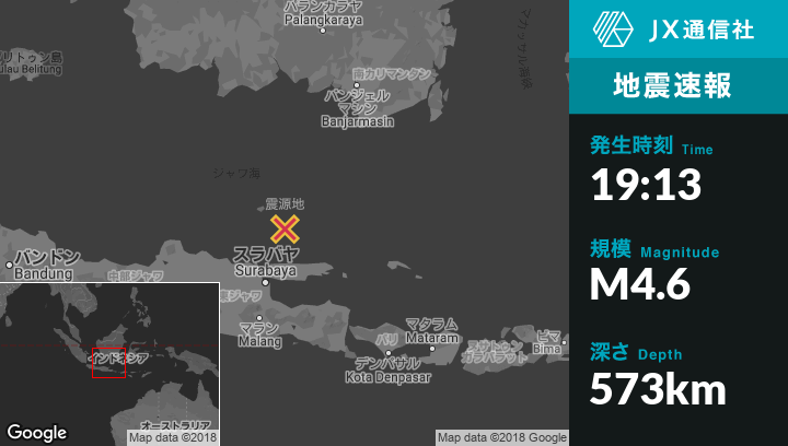 | 震源地 | インドネシアのKemeduranから北東113kmの地点 |