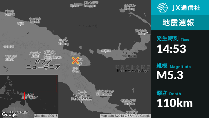 | 震源地 | パプアニューギニアのLaeから北北西65kmの地点 |
