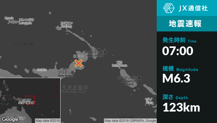 | 震源地 | パプアニューギニアのKokopoから南西93kmの地点 |