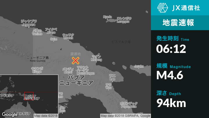 | 震源地 | パプアニューギニアのWabagから北東76kmの地点 |