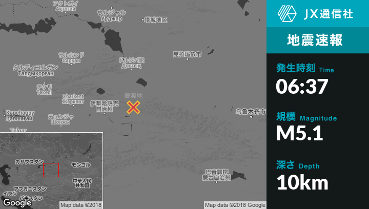 | 震源地 | 中国のYining Xianから東北東112kmの地点 |