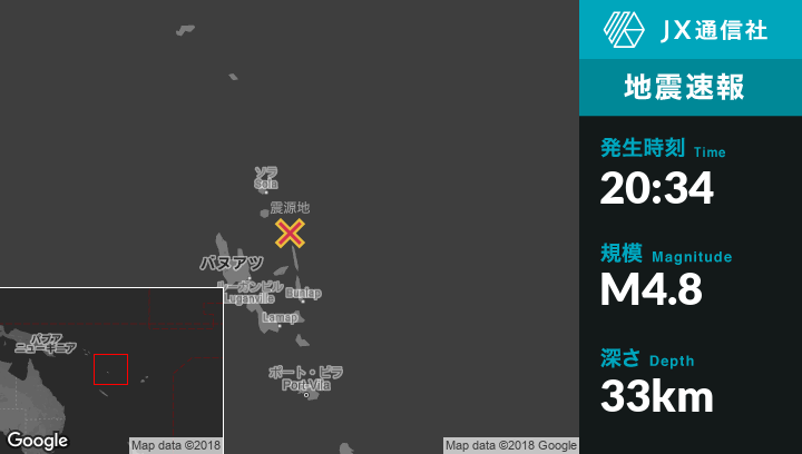 | 震源地 | バヌアツのSolaから南南東86kmの地点 |