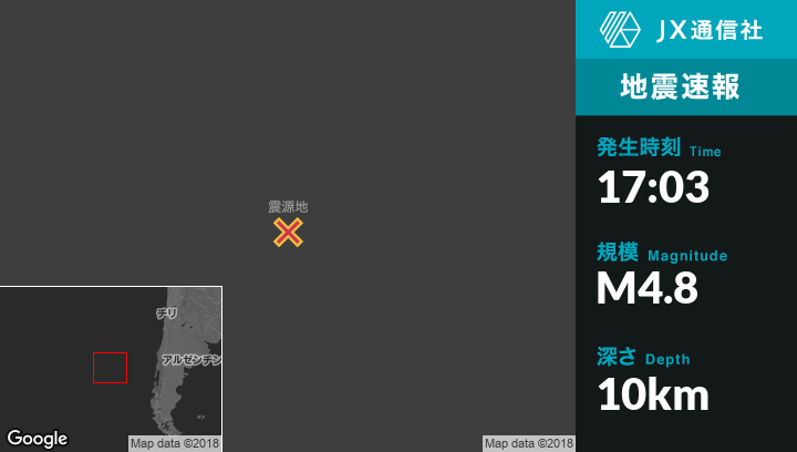 10月25日 17:03頃、チリのSan Juan Bautistaから南西1169kmの地点でM4.8の地震がありました。