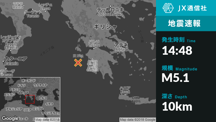 | 震源地 | ギリシャのMouzakiから南西33kmの地点 |