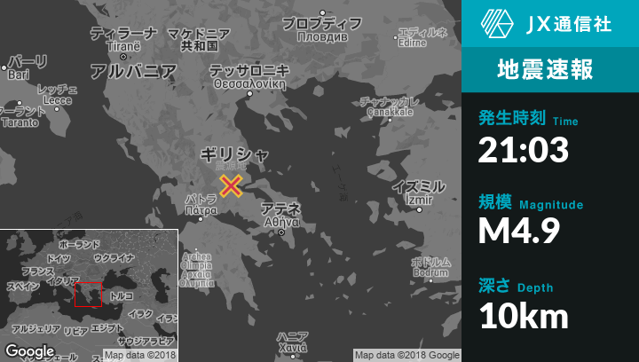 | 震源地 | ギリシャのLamiaから北北東8kmの地点 |