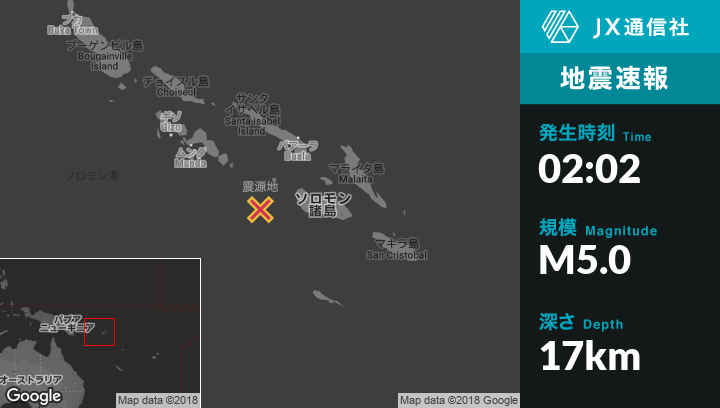 | 震源地 | ソロモン諸島のHoniaraから西128kmの地点 |