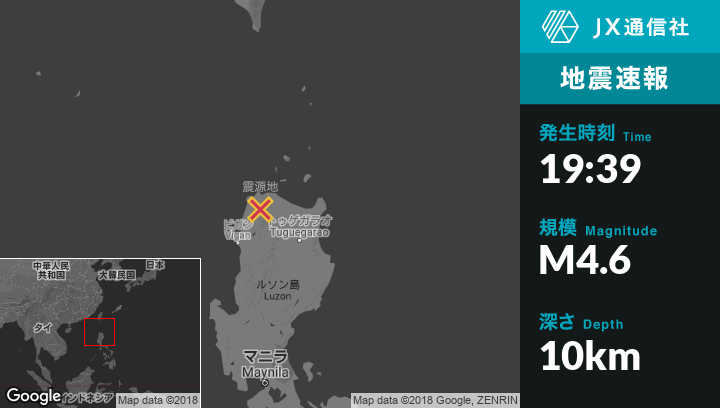 10月27日 19:39頃、フィリピンのAdamsから南11kmの地点でM4.6の地震がありました。