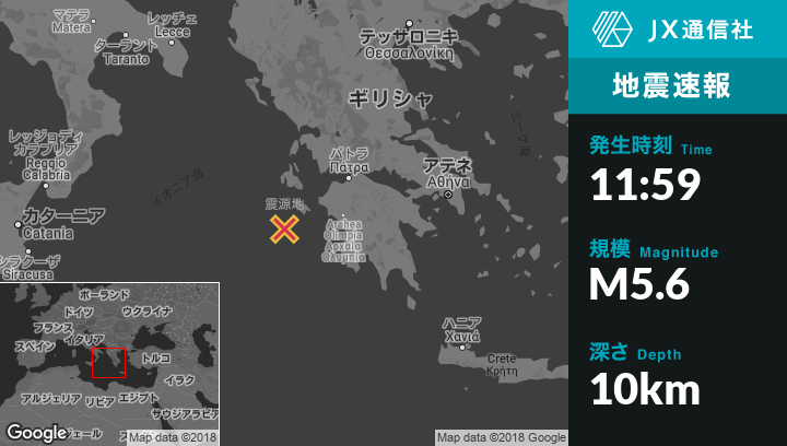 | 震源地 | ギリシャのMouzakiから南西40kmの地点 |