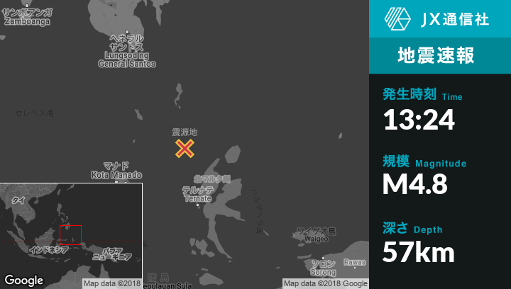 | 震源地 | インドネシアのTobeloから北西154kmの地点 |