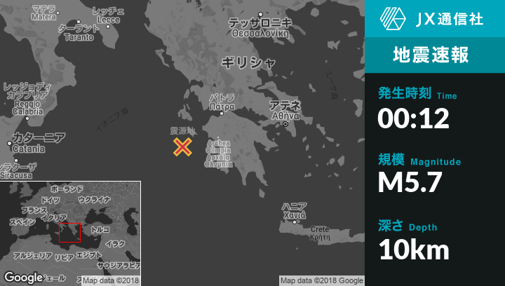 | 震源地 | ギリシャのMouzakiから南西37kmの地点 |