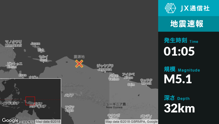 | 震源地 | インドネシアのAbepuraから西北西216kmの地点 |