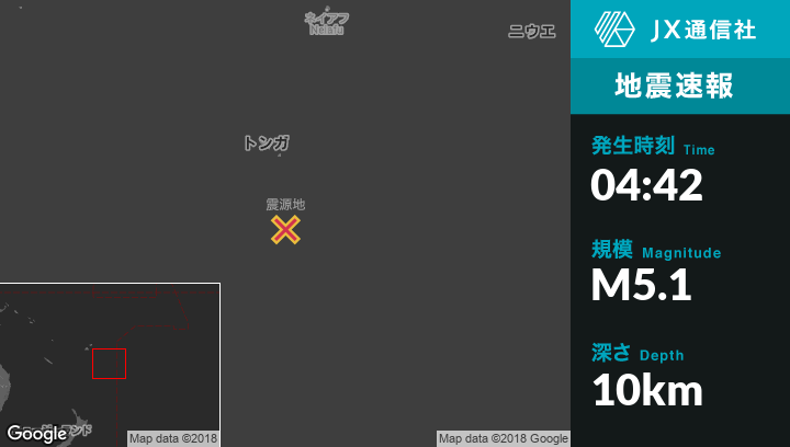 | 震源地 | トンガの`Ohonuaから南146kmの地点 |