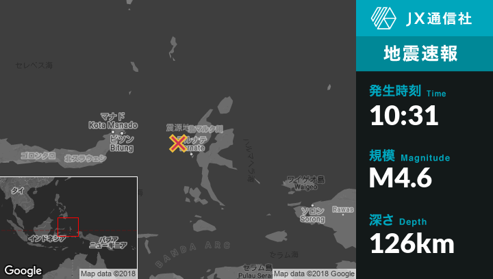 | 震源地 | インドネシアのKota Ternateから北西68kmの地点 |