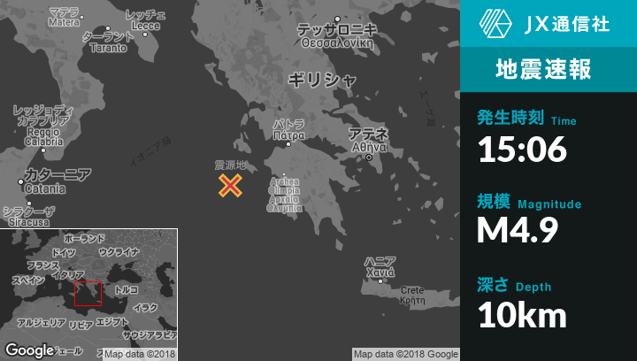| 震源地 | ギリシャのMouzakiから西南西52kmの地点 |